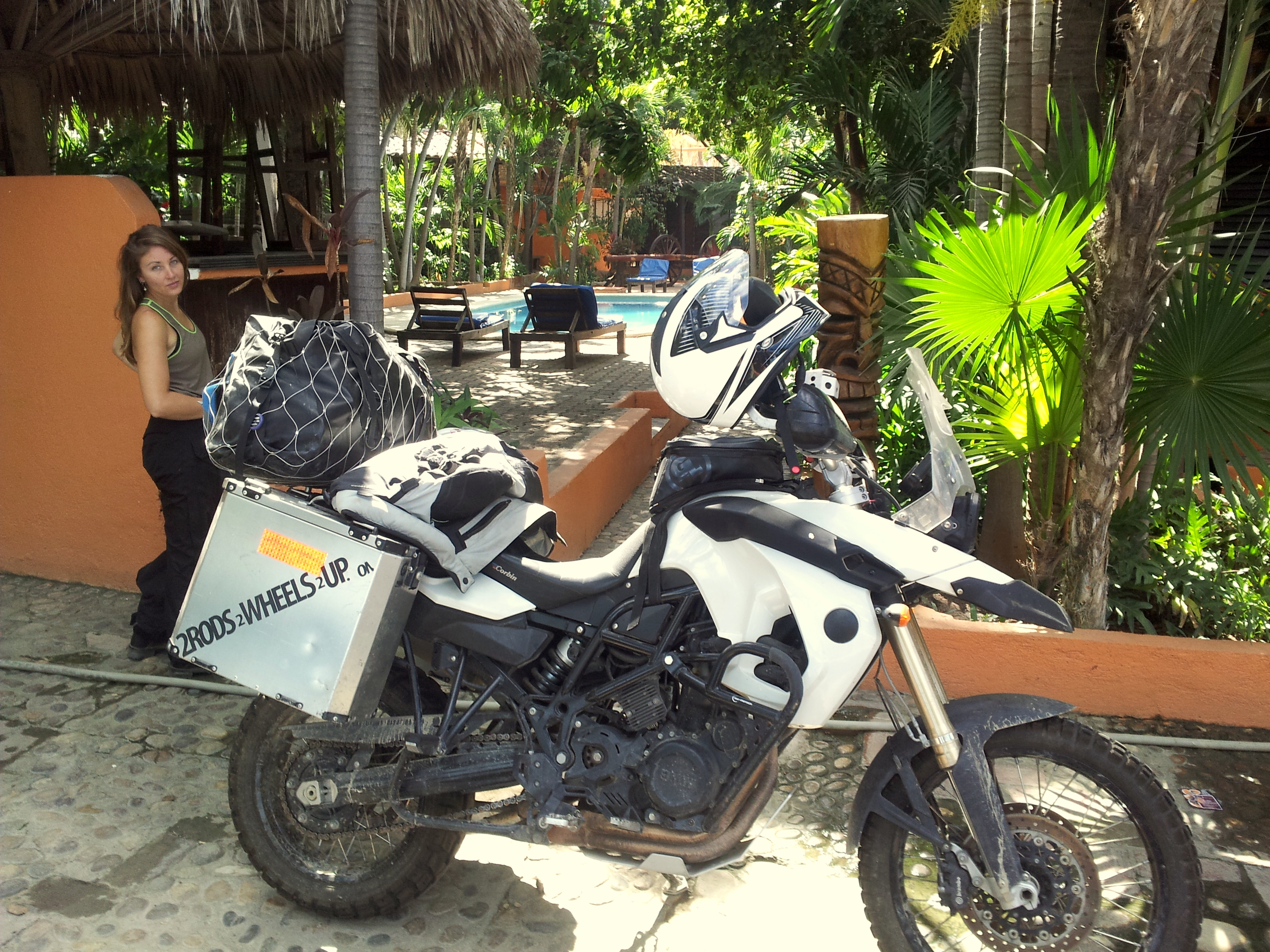 It was damn hot when we left Zipolite in the morning and at 35 degrees celsius putting on the riding gear was near torture. Fortunately we only had a short ride one hour ride to Huatulco and found the hotel/resort Castillo where we met Jenns parents.
