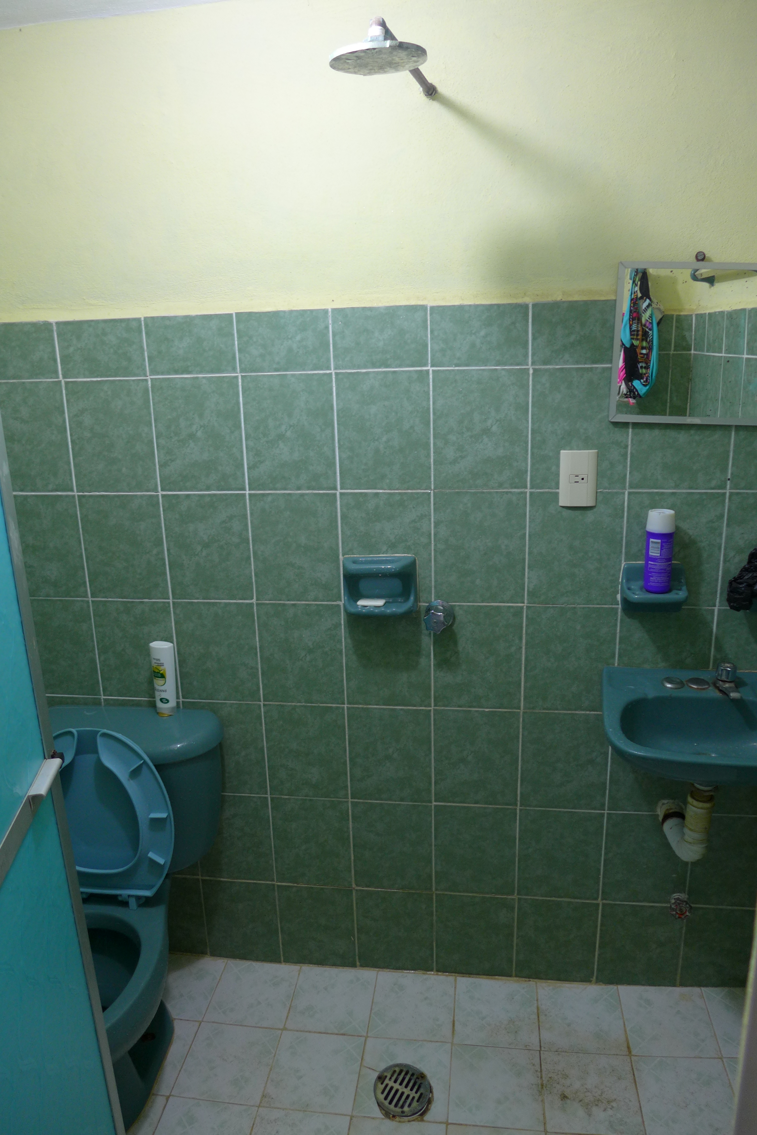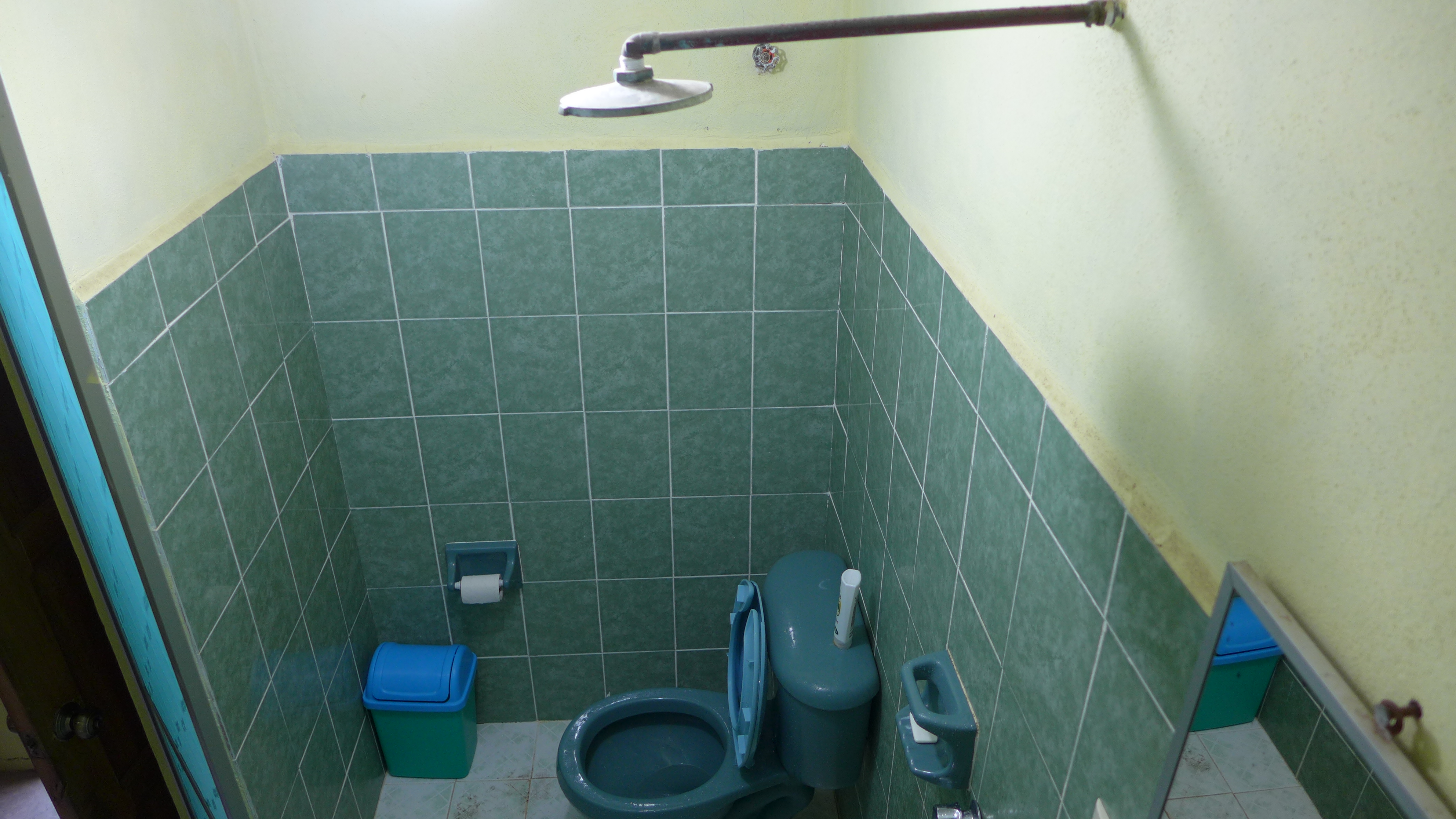 Our room has a “unique” shower setup with the shower head directly in the middle of the bathroom, no curtain to separate the shower from the sink or toilet and certainly brings true meaning to the phrase “shit,shave,shower”