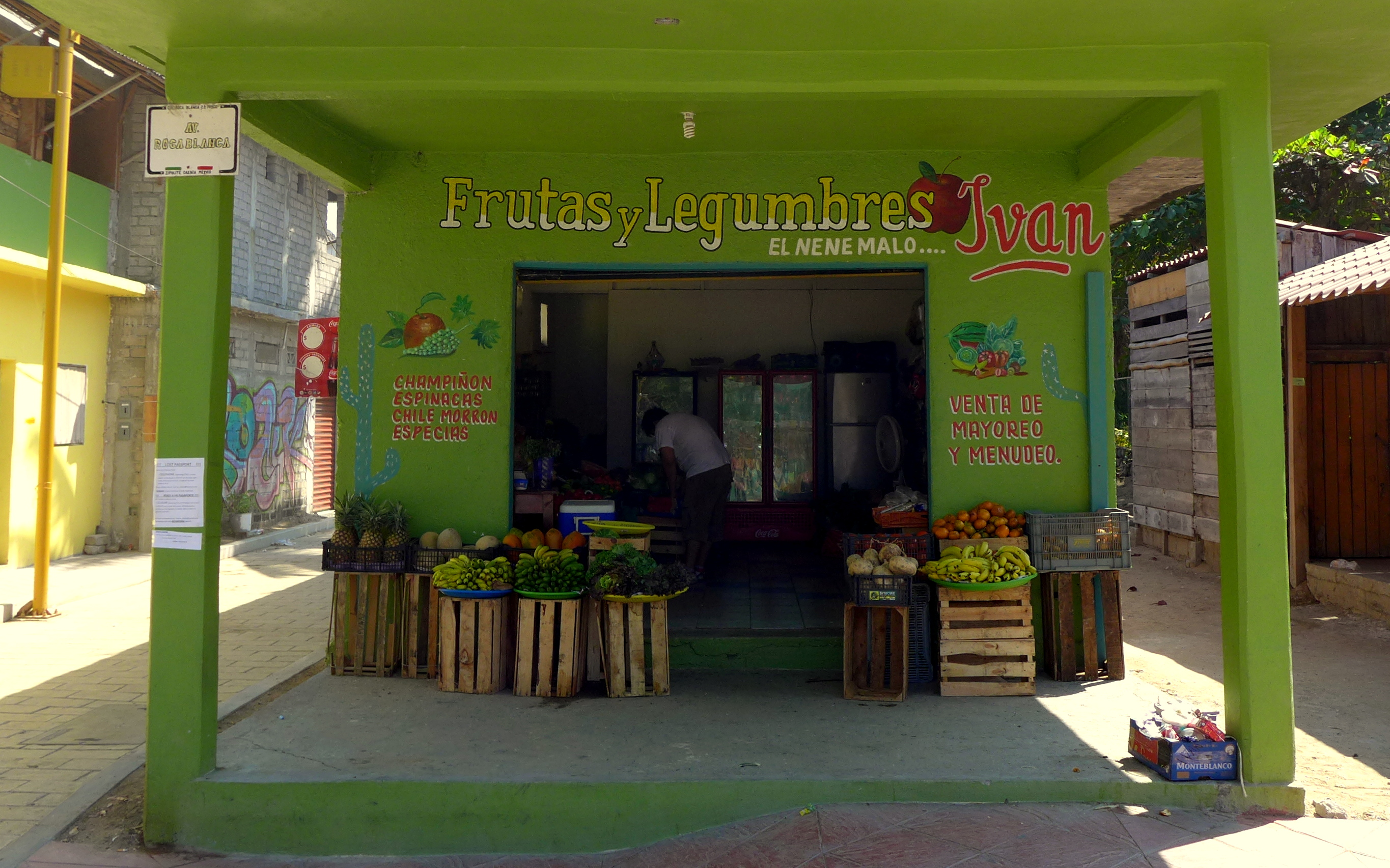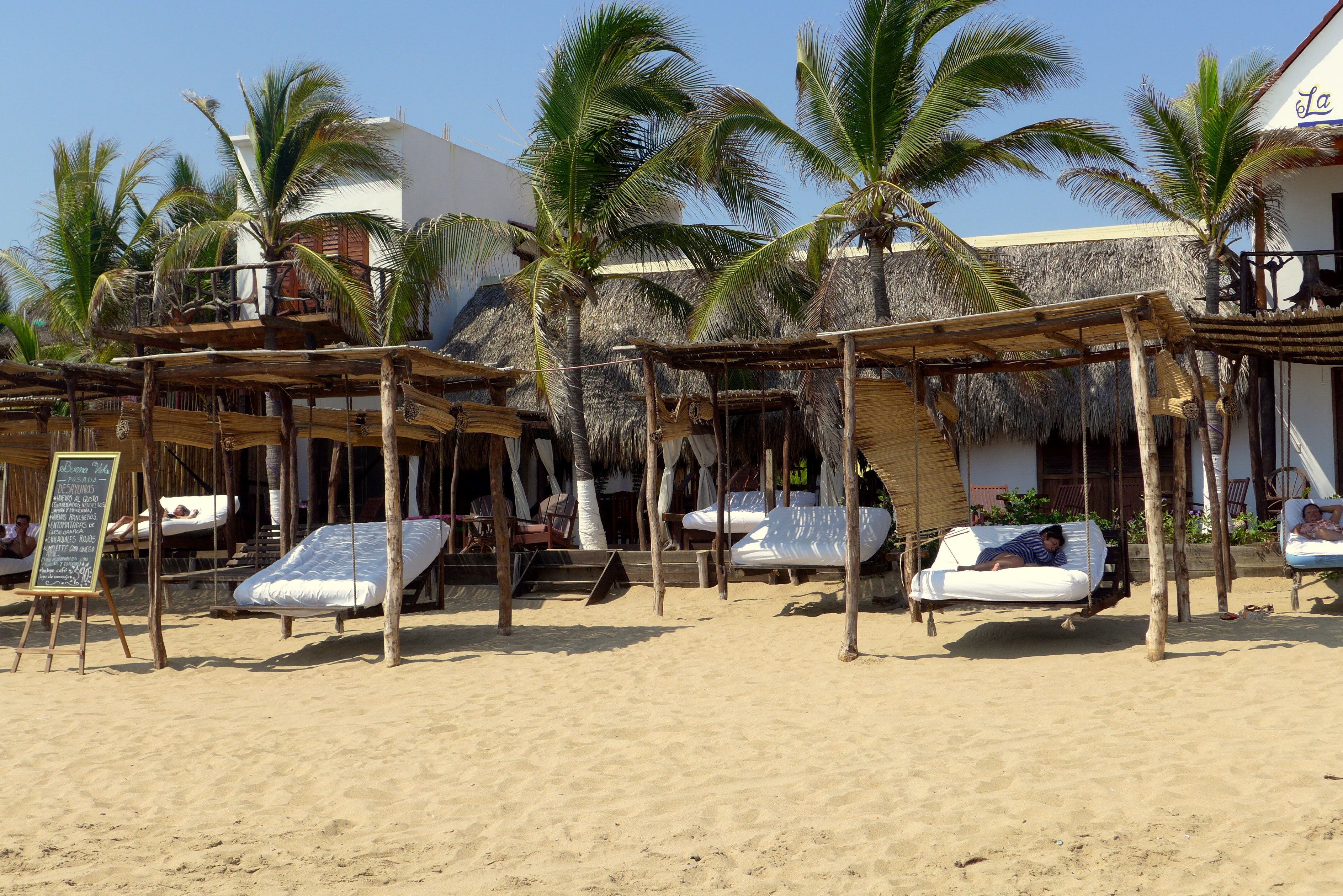 Pictures of quiet downtown Zipolite but don’t be fooled at night the tables and chairs come out and the restaurant scene is full of life.