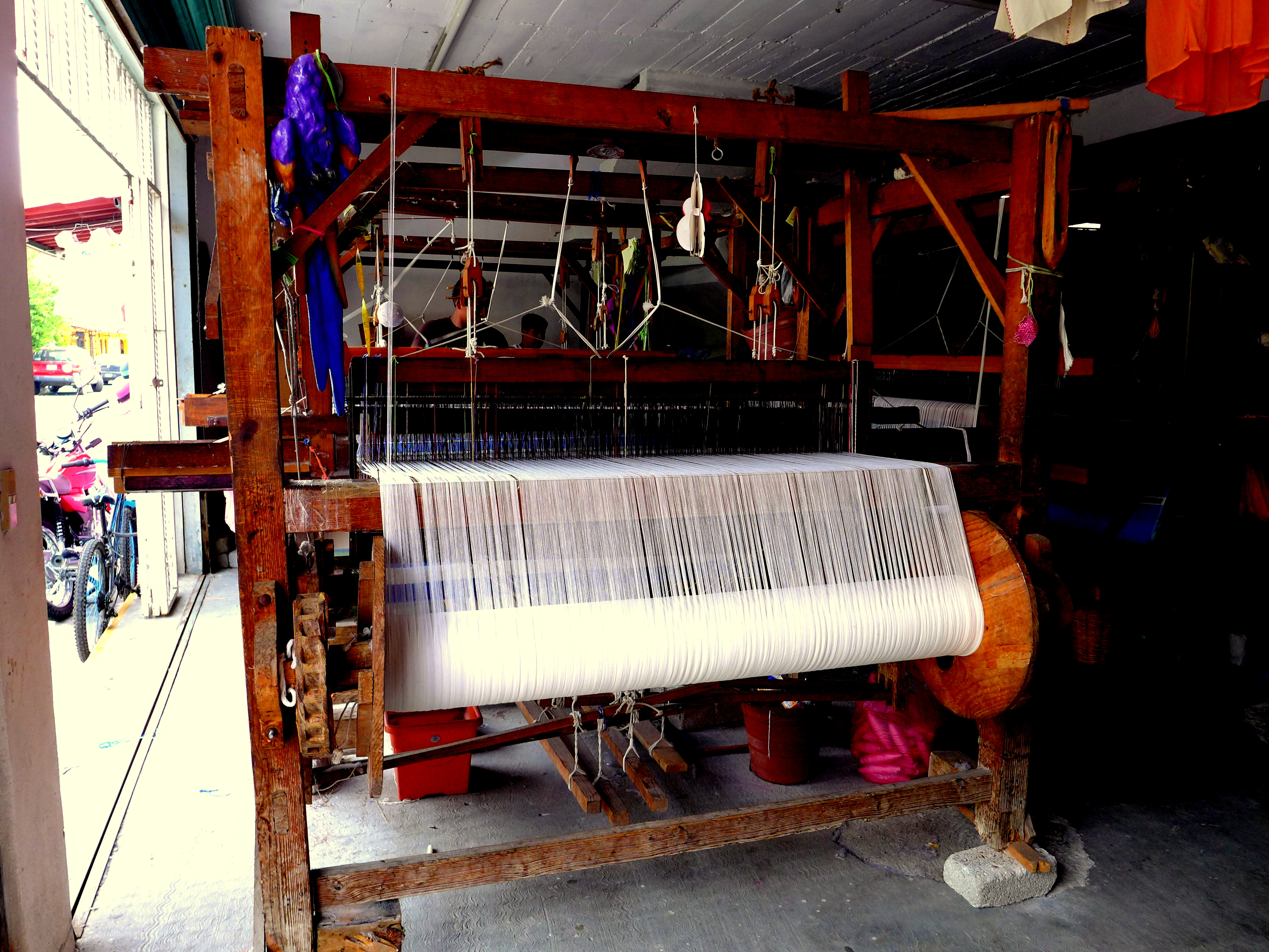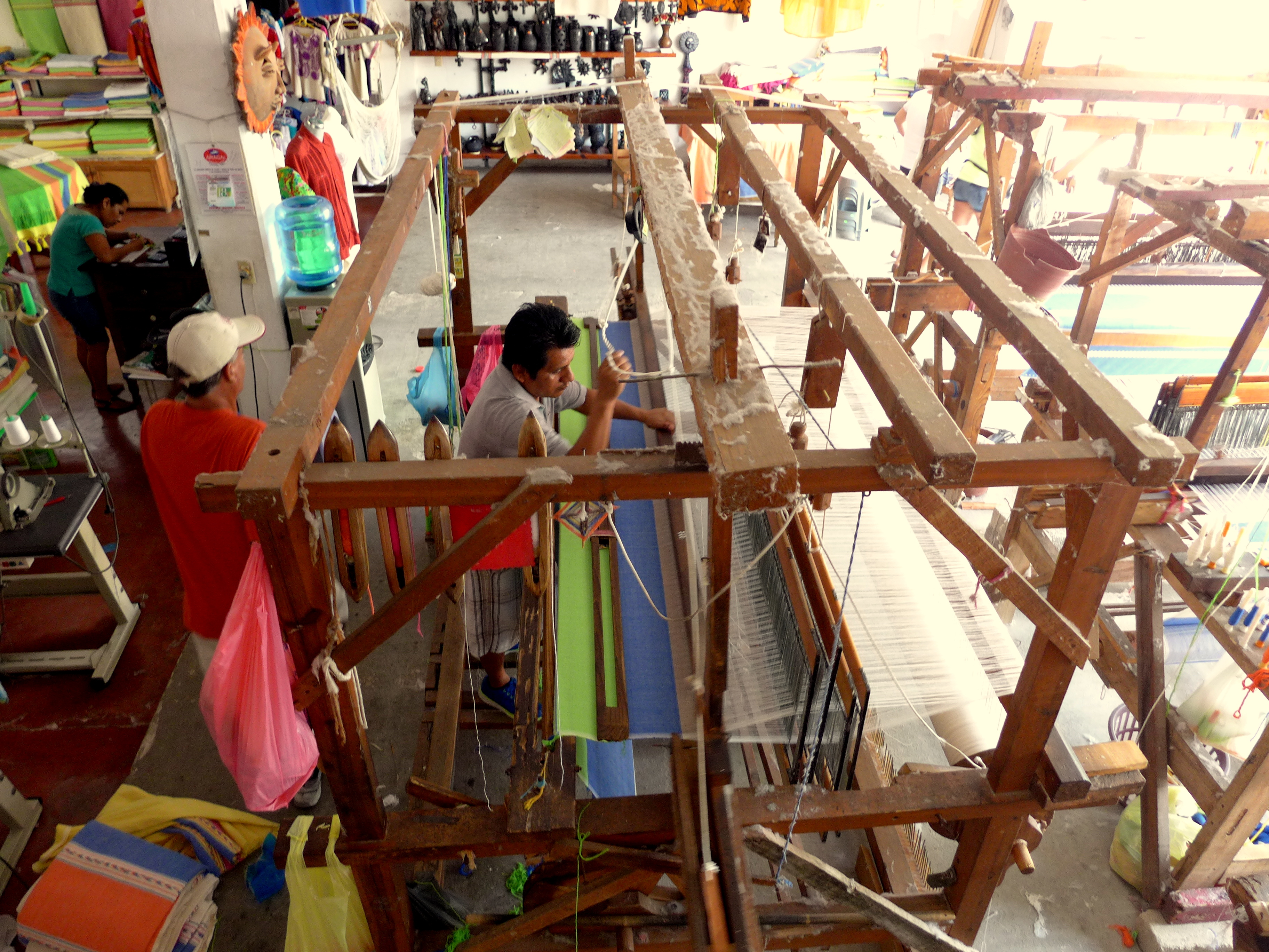 After our afternoon of tequila sampling, oops I mean “shopping” we stumbled into a textile shop… literally, where local weavers were hard at work.