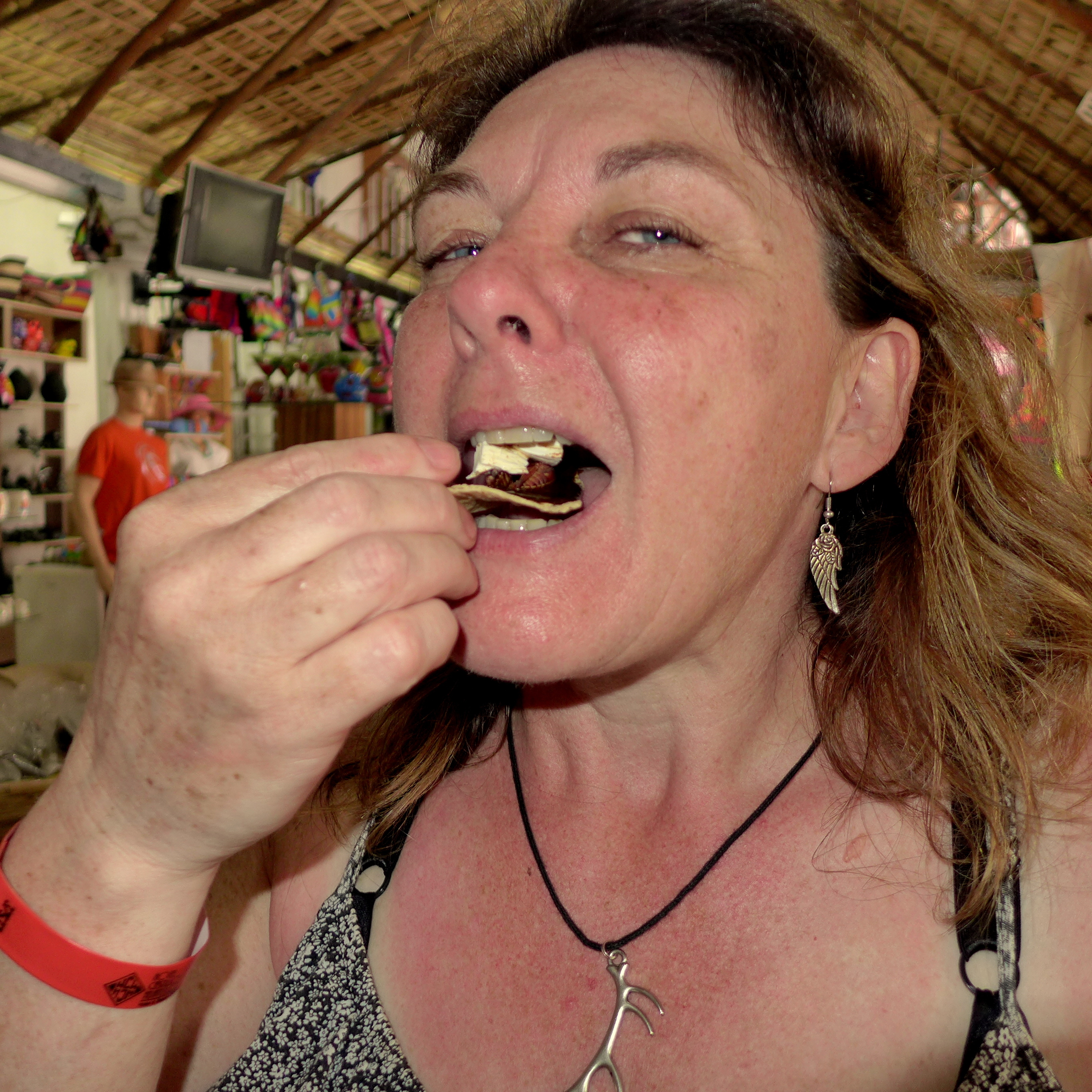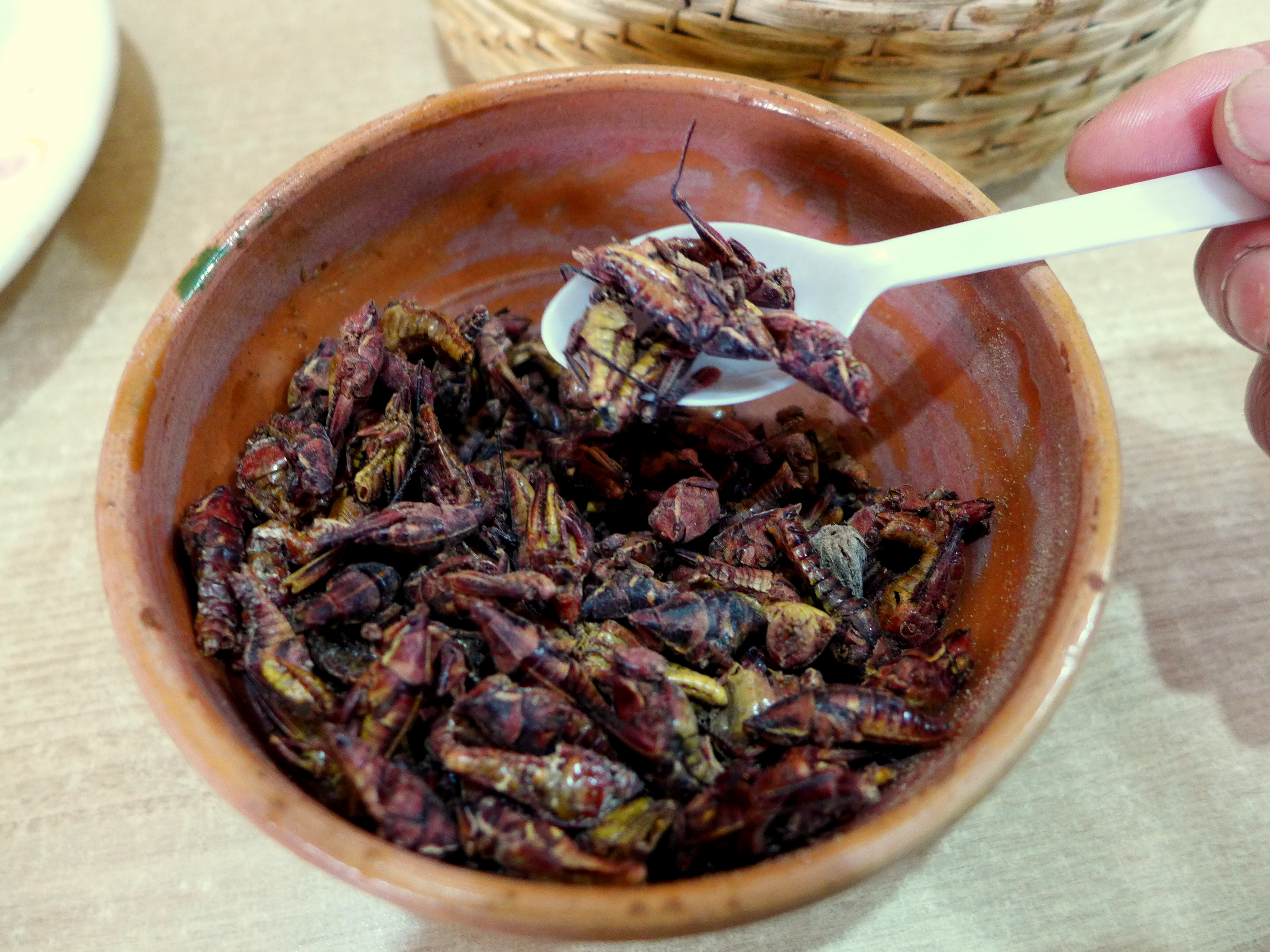 While having a couple shots of the “local medicine” George brought out roasted crickets for our sampling pleasure.