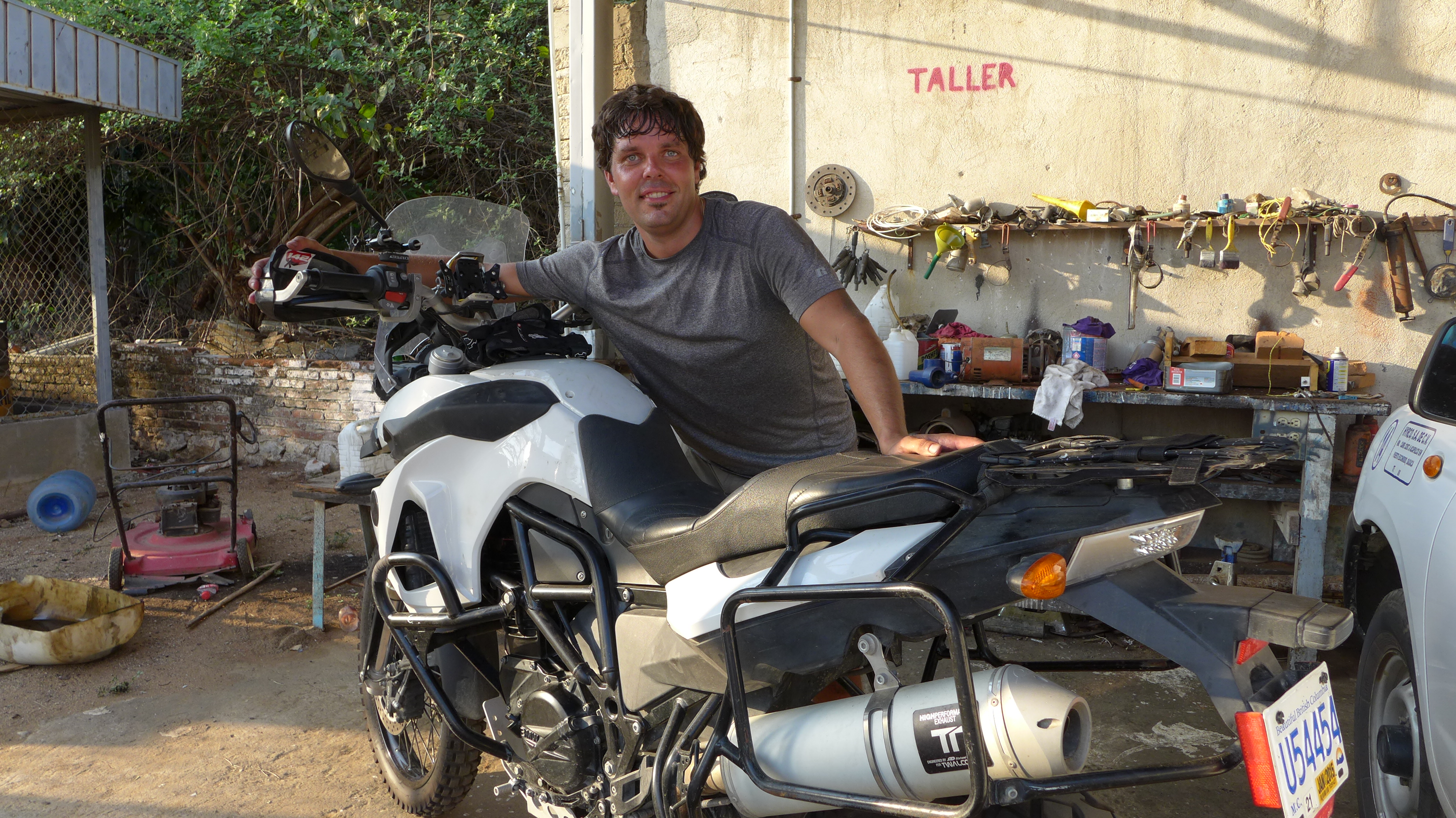 Upon unloading the gear from the bike I noticed a large spray of oil along the frame and motor so I have an issue to solve while we rest up in Huatuclo. I have cleaned the oil from the bike and put a wrench to every nut and bolt in hopes that it is just a loose bolt somewhere around the engine or equivalent. After running the bike around the parking lot for twenty minutes or so I did not see any additional oil leaking but a proper test ride is needed to confirm the problem solved and I only hope we get that lucky. Stay tuned!