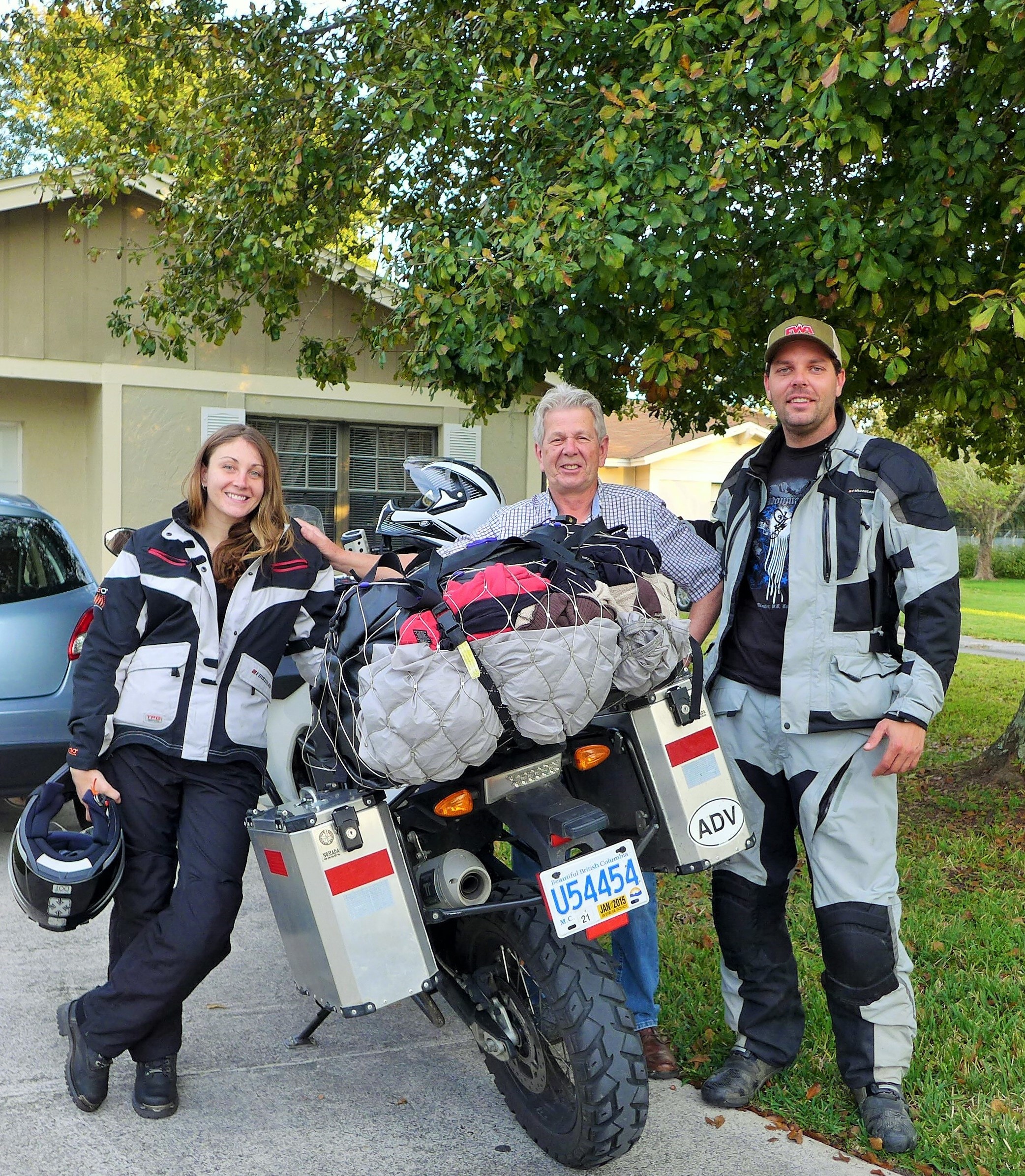 After a fun six days on the road we are happy to spend a couple days with our feet up in the land of white heads and alligators. We are greeted by Ivan as the bike rolls up onto the driveway.