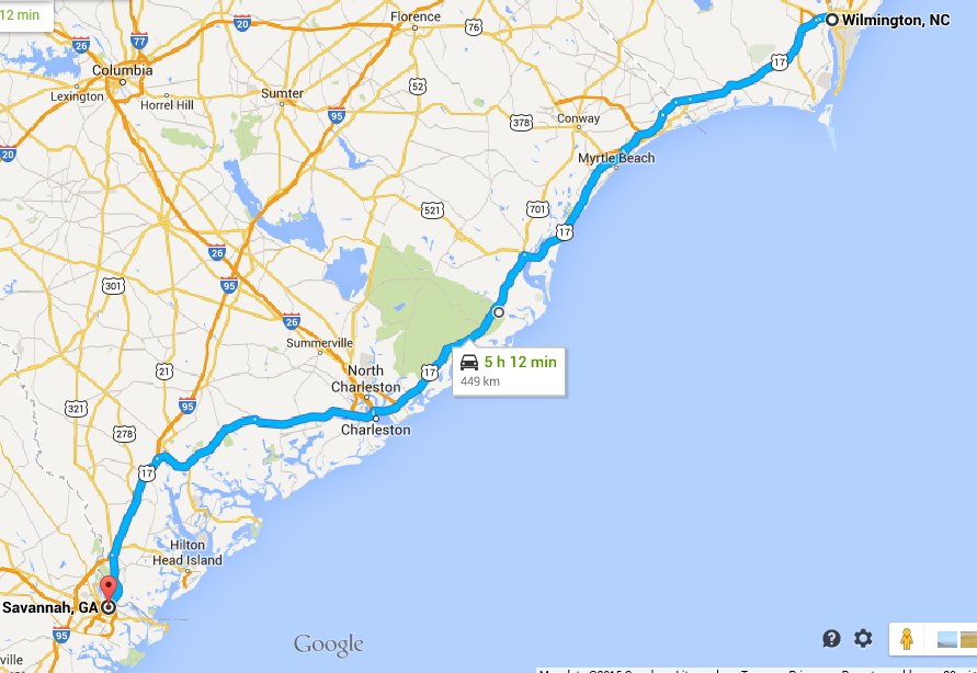 The next 2 days are great as we bounce from Elizabeth city (NC) to Wilmington (SC) to Savannah (GA).