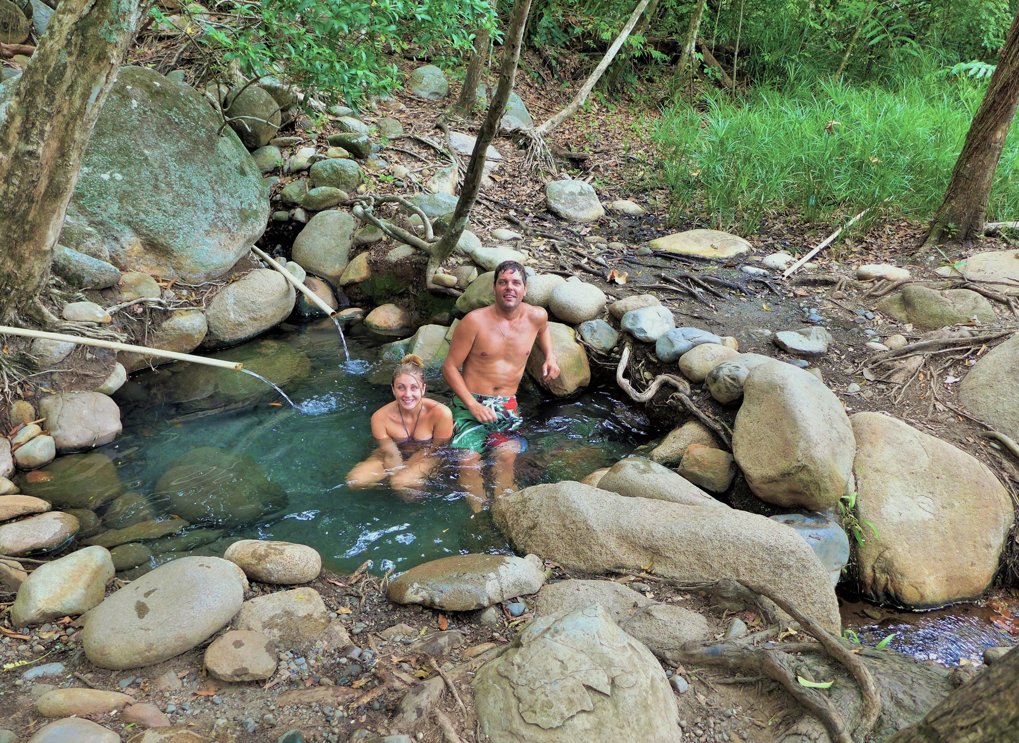 The hot springs are on a locals farmland and we had to pay $5.00 per person to enter. We walked on down to the springs and found a small but hot pool located along the rivers edge.