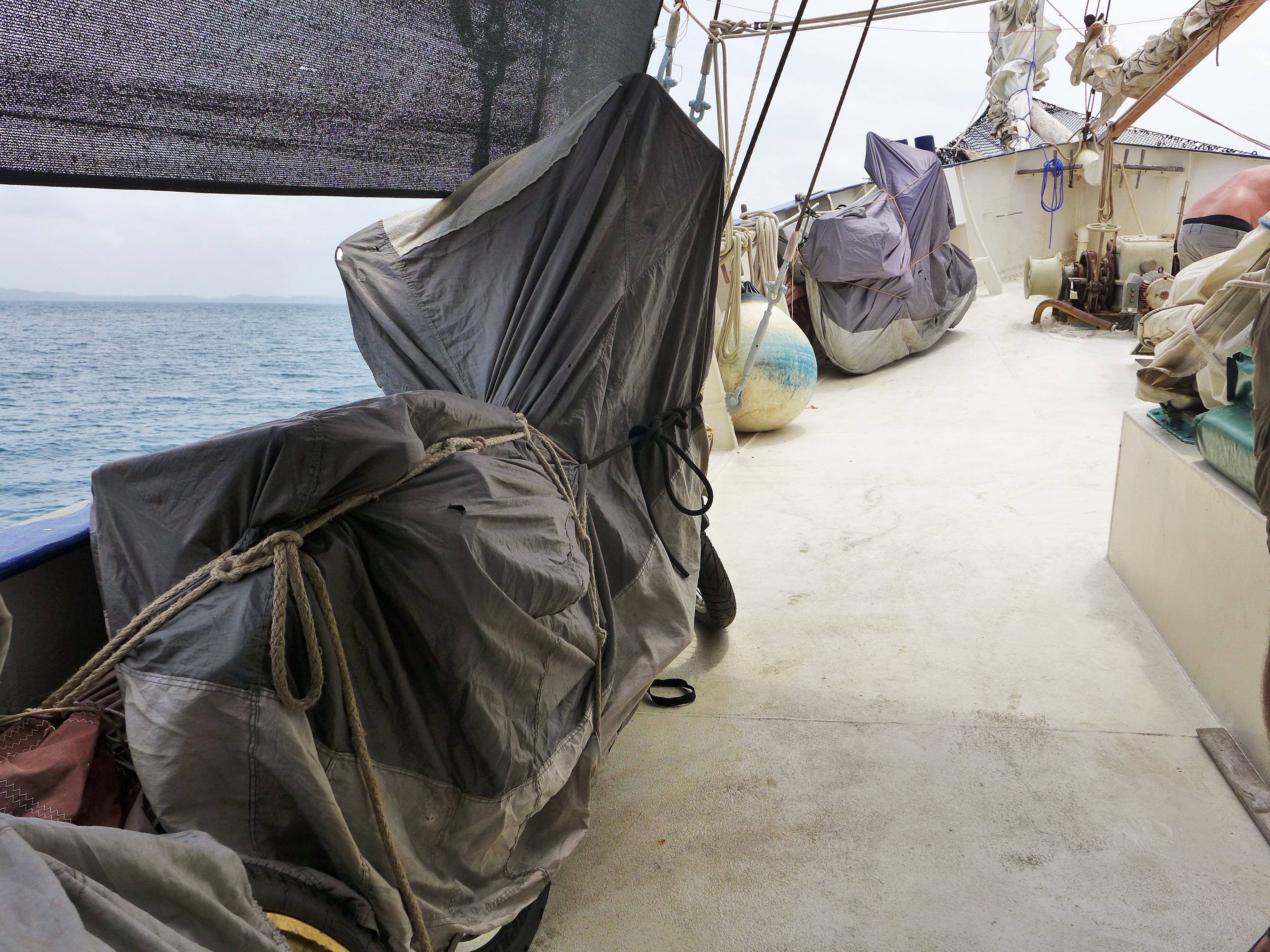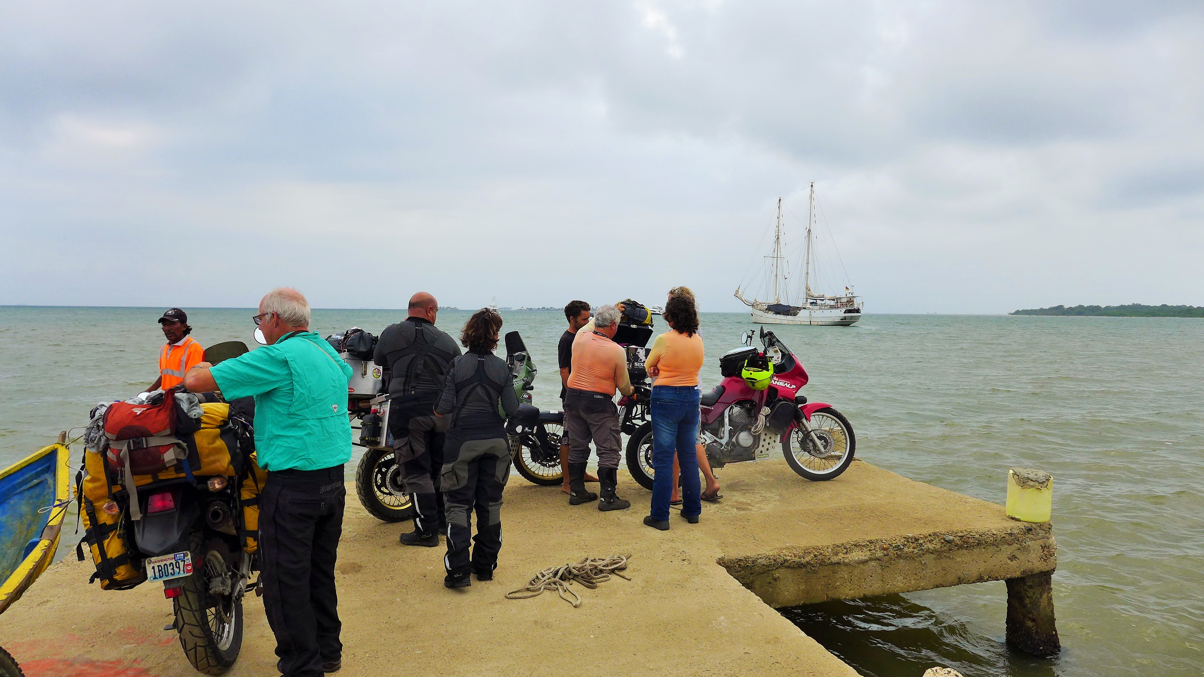 Friday August 7th we loaded up and made our way over to Carti where we met up with the sailing vessel Stahlratte a thirty eight meter long sailboat built in Holland in 1903. Five other motorcyclists were amongst the travellers looking to jump the “gap” from Panama to Colombia consisting of four Italians and one American. We shook hands with our new friends and took our place in line waiting for Blanco to be hoisted up onto the “Ratte”.