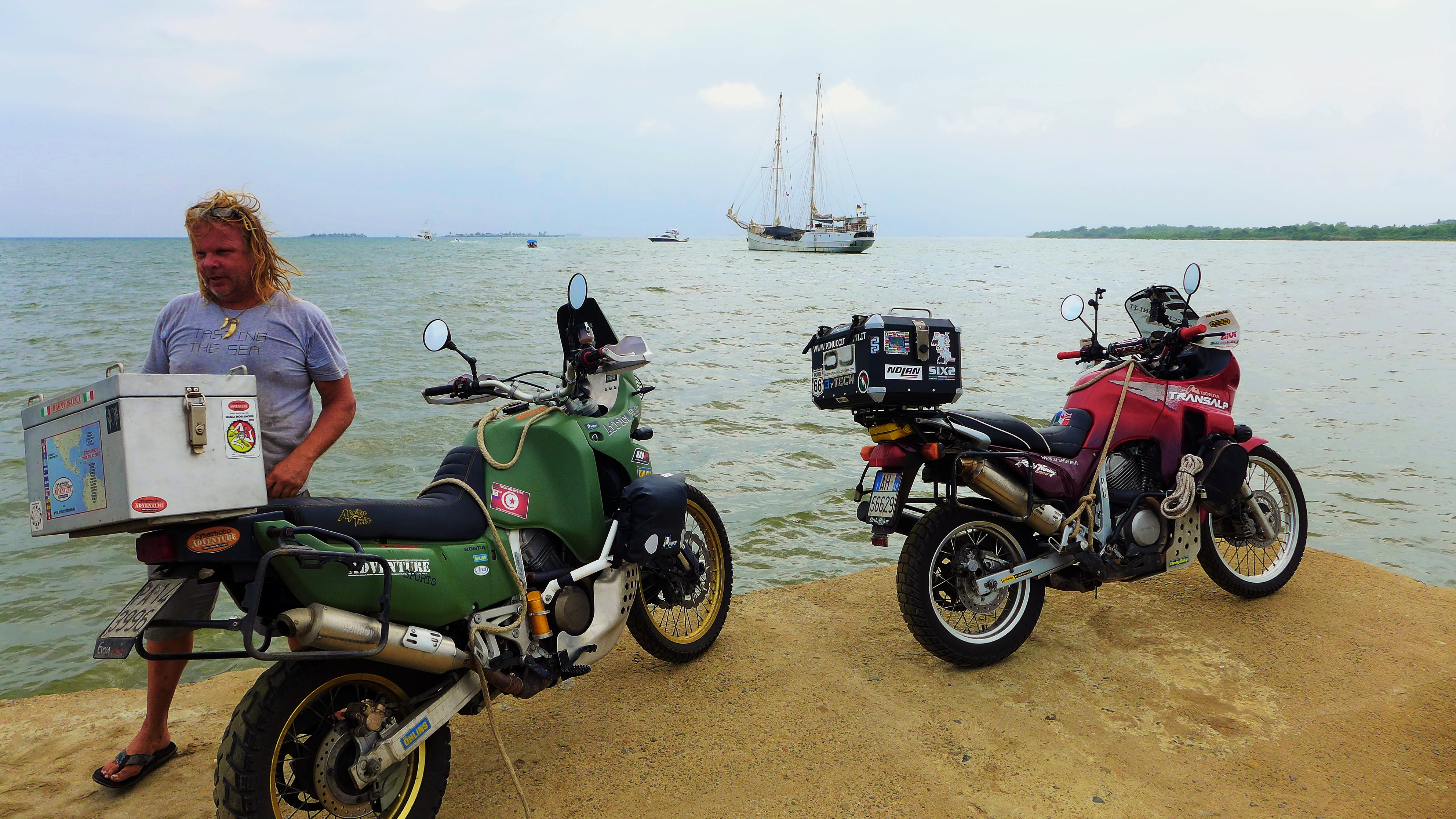 Hola Dan! upgrading to a more “dirt” worth machine I see, I’m jealous as there is nothing better then shopping for a new moto! we are glad you enjoyed the blog post it was a great experience sailing on the “Ratte”. Jenn in fact did give me shit for posting her “green around the gills” photo but I had to tell it like it was right?! unfortunately we wont be driving back through Mexico on our way home instead we have decided to fly the bike and ourselves home from Bogota Colombia after we are finished exploring down here. The cost and time needed to drive back to Canada is just not economical. We however will continue to travel after we drop the bike off back home and will head over to S.E. Asia and backpack throughout Thailand, Vietnam, Cambodia, etc.. until next summer. Thanks for your kind offer to visit and stay with you guys in Ajijic, next time we pass your neck of the woods we will be sure to knock on your door. Better yet you could ride that fancy new 1200gs up north one summer and visit beautiful B.C Canada where our door would always be open! A warm hello to Andy from us, take care and enjoy your new moto!
