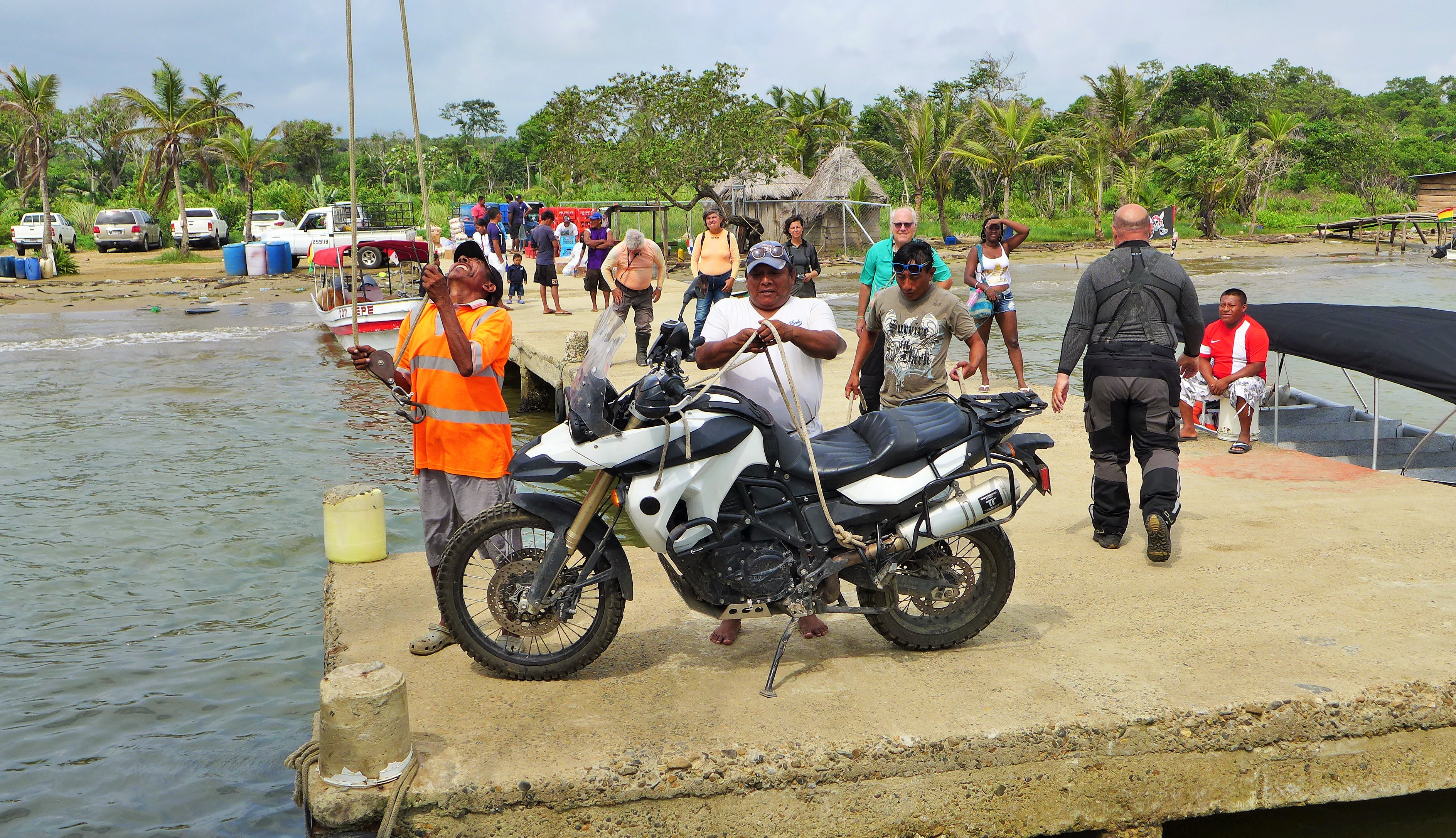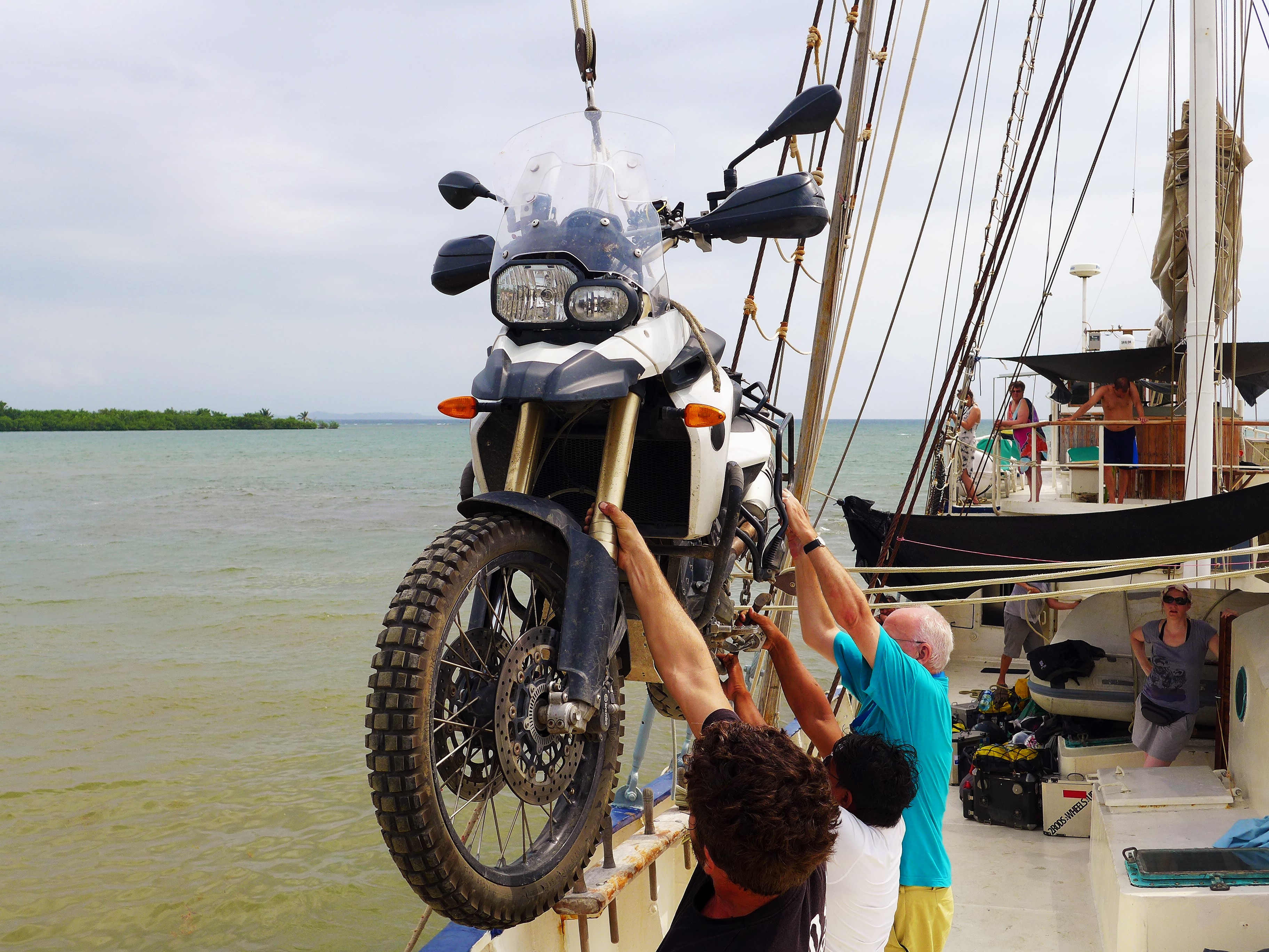 There was a few nerve racking moments as we watched our moto dangle over the Caribbean sea but all went well.