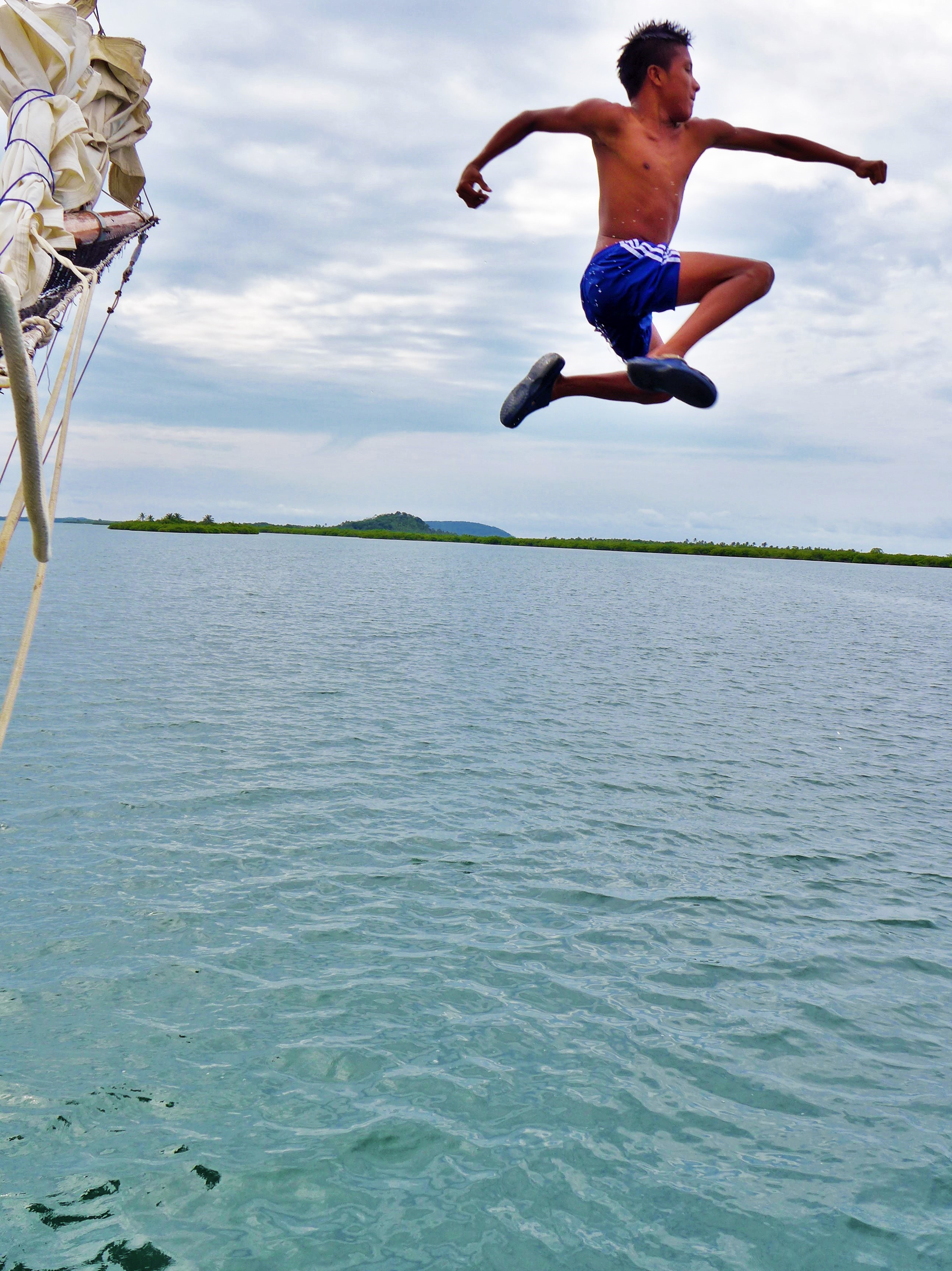 It was great seeing just how much joy the Kuna children received from visiting the Stahlratte. It was as if the carnival had arrived to their tiny floating village. The kids downed sodas and explored the ship. I wanted to have some fun with the kids and showed them the way to the ships bow where we had been jumping from the day before. Of course they all wanted to jump and took turns leaping from the beam.